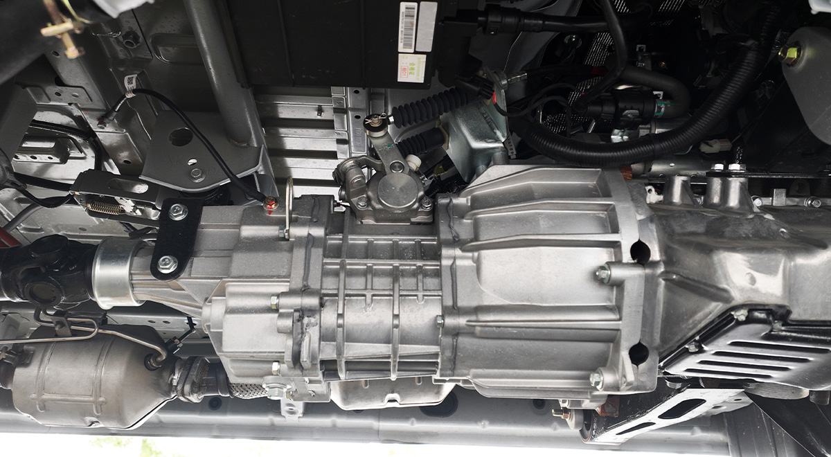 Sử dụng hộp số tỷ số truyền tăng, tối ưu tốc độ xe và tiết kiệm nhiên liệu. Vỏ nhôm trọng lượng nhẹ tản nhiệt tốt, Hộp số có đối trọng cho thao tác sang số nhẹ nhàng. Hộp số được bố trí nằm dưới khung chassis, thuận tiện bảo dưỡng