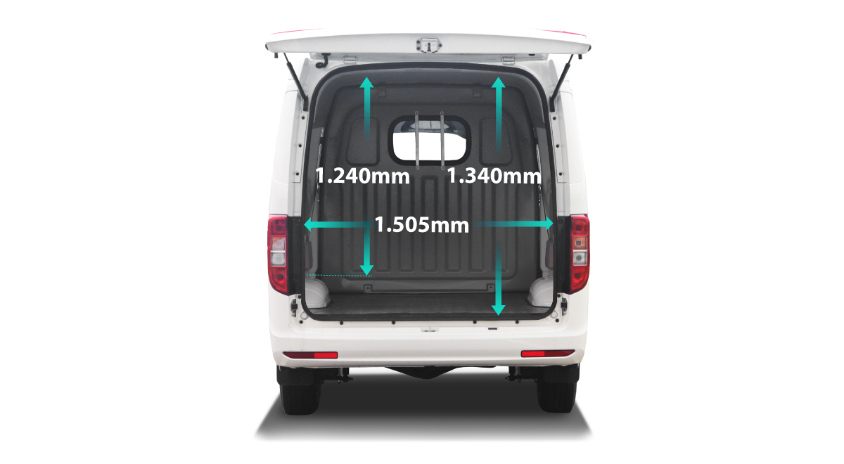 Khoang hàng vuông, rộng rãi. Tối ưu khả năng vận chuyển hàng hóa cồng kềnh. Cửa sau được cài đặt ty hơi hỗ trợ lực. Đóng/ mở cửa nhẹ nhàng, dễ dàng xếp/dỡ hàng hóa nơi chật hẹp