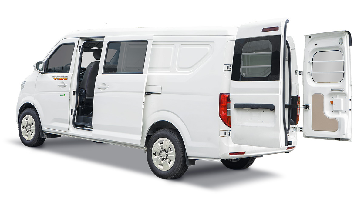 Toàn bộ thân xe được trang bị 5 cửa, gồm 2 cửa truyền thống, 2 cửa cho dãy ghế phía sau và 1 cửa mở 2 cánh phía sau  giúp việc hàng hóa lên xuống dễ dàng đặc biệt là xe nâng. (Cửa mở 2 cánh trong phân khúc xe tải van nhỏ này thì đầu năm 2022 cũng có 1 sản phẩm đó là xe tải van Tera V động cơ Mitsubishi là dòng xe được trang bị đầu tiên trong phân khúc xe tải van cỡ nhỏ).
